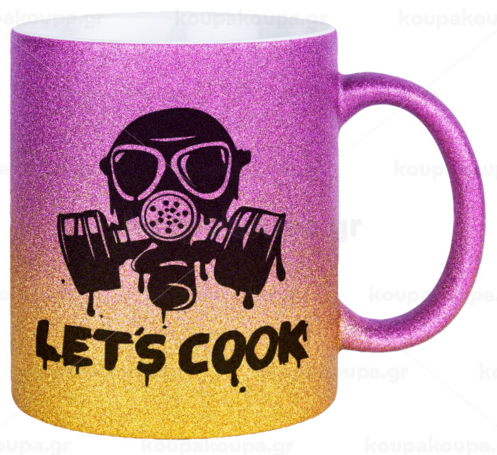 Let's cook mask, Κούπα Χρυσή/Ροζ Glitter, κεραμική, 330ml