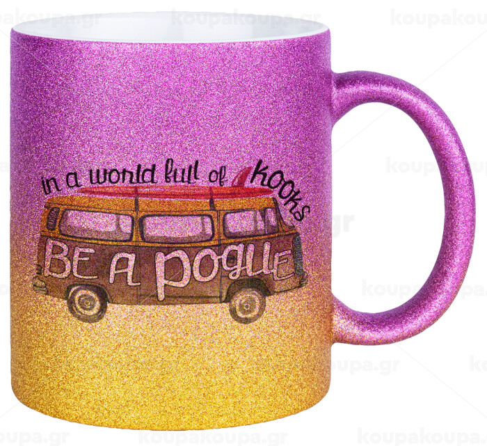 Outerbanks Pogue Life, Κούπα Χρυσή/Ροζ Glitter, κεραμική, 330ml