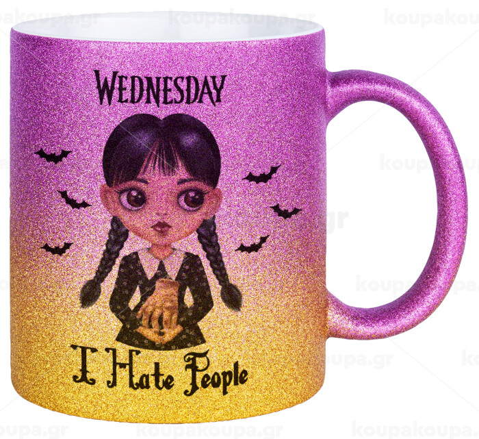 Wednesday Adams, i hate people, Κούπα Χρυσή/Ροζ Glitter, κεραμική, 330ml