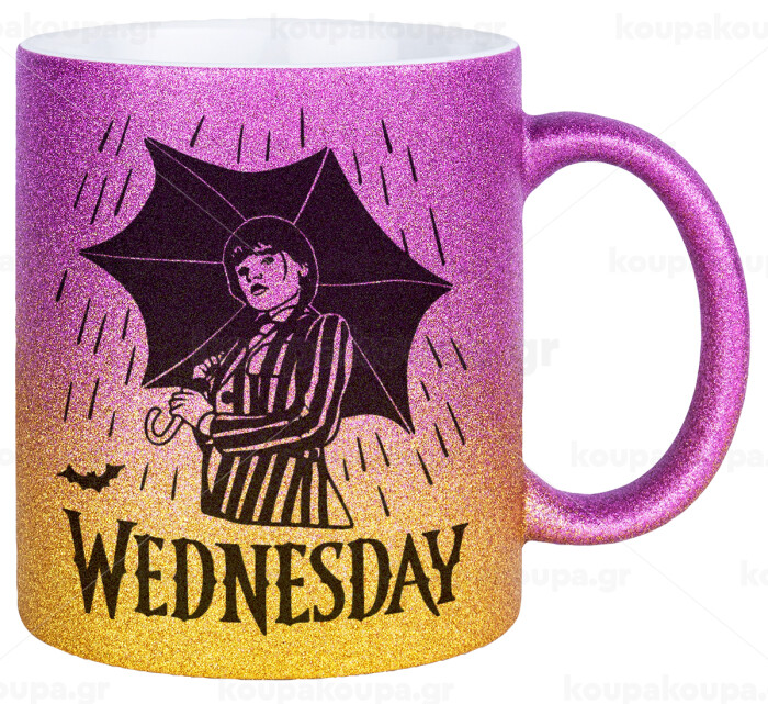 Wednesday Addams, Κούπα Χρυσή/Ροζ Glitter, κεραμική, 330ml
