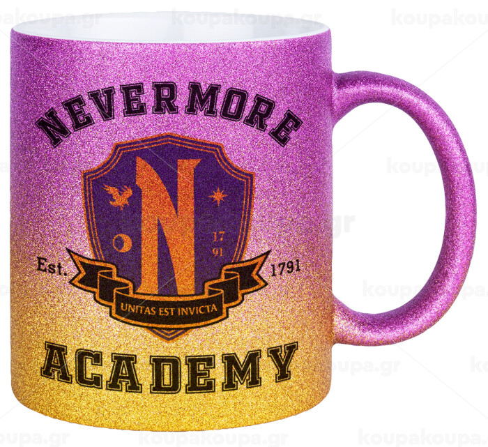 Wednesday Nevermore Academy University, Κούπα Χρυσή/Ροζ Glitter, κεραμική, 330ml