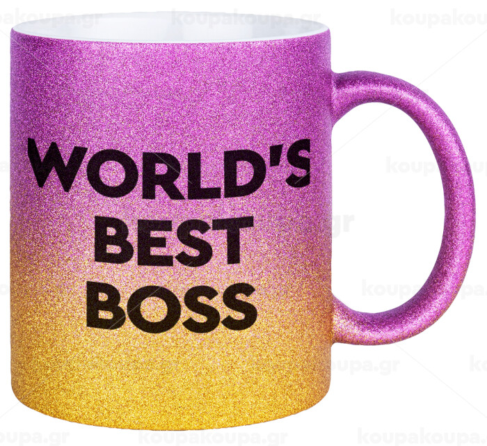 World's best boss, Κούπα Χρυσή/Ροζ Glitter, κεραμική, 330ml