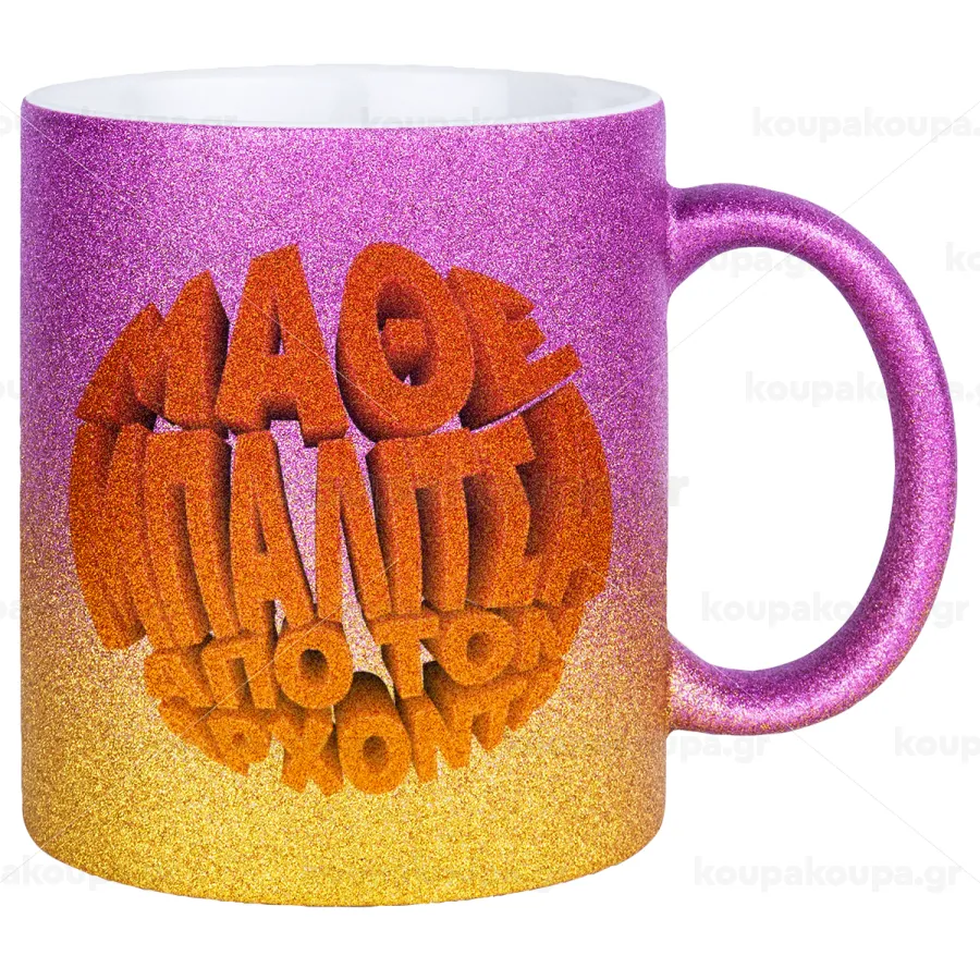Μάθε μπαλίτσα από τον Άρχοντα, Κούπα Χρυσή/Ροζ Glitter, κεραμική, 330ml