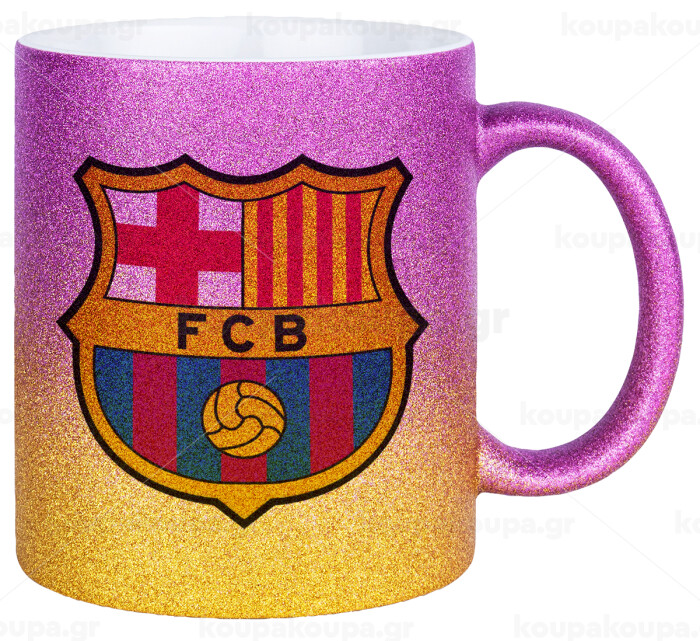 Barcelona FC, Κούπα Χρυσή/Ροζ Glitter, κεραμική, 330ml