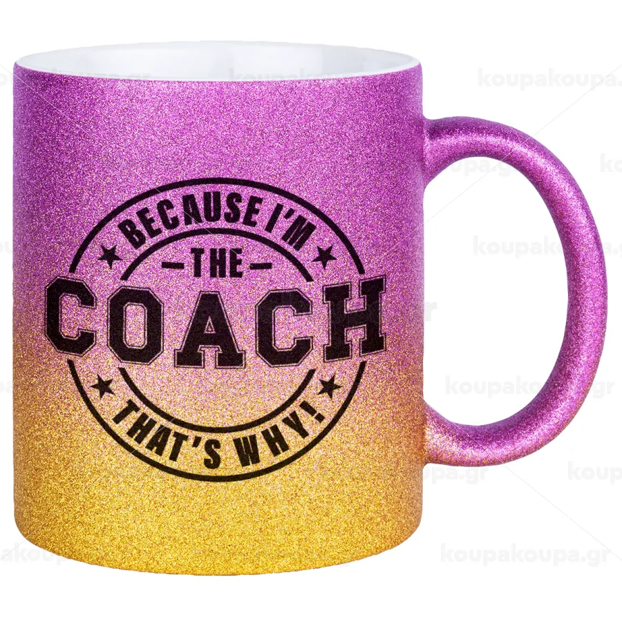 Because i'm the Coach, Κούπα Χρυσή/Ροζ Glitter, κεραμική, 330ml