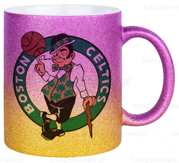 Boston Celtics, Κούπα Χρυσή/Ροζ Glitter, κεραμική, 330ml