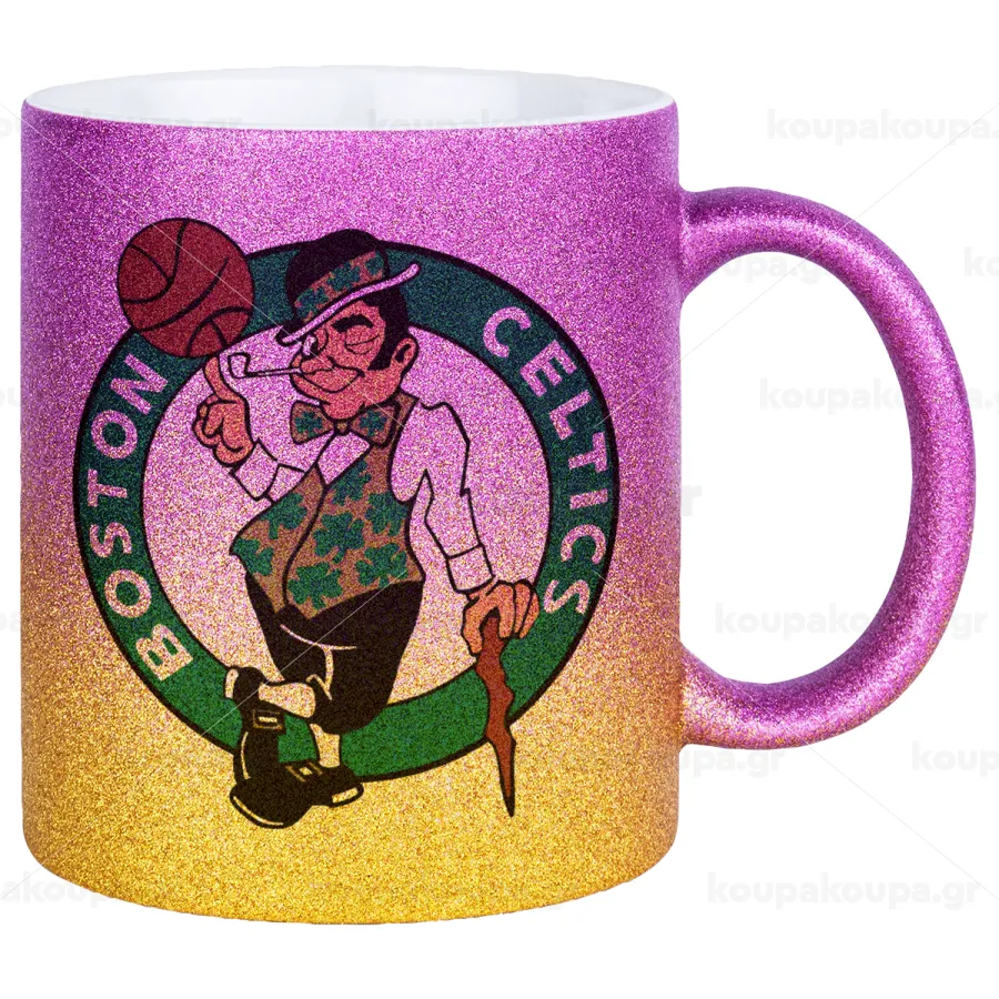 Boston Celtics, Κούπα Χρυσή/Ροζ Glitter, κεραμική, 330ml