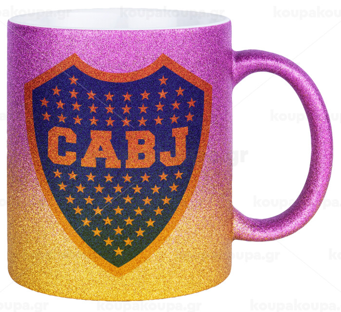 Club Atlético Boca Juniors, Κούπα Χρυσή/Ροζ Glitter, κεραμική, 330ml