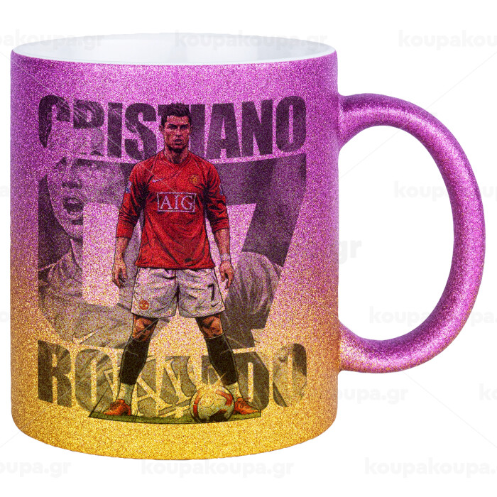 Cristiano Ronaldo (Κριστιάνο Ρονάλντο), Κούπα Χρυσή/Ροζ Glitter, κεραμική, 330ml