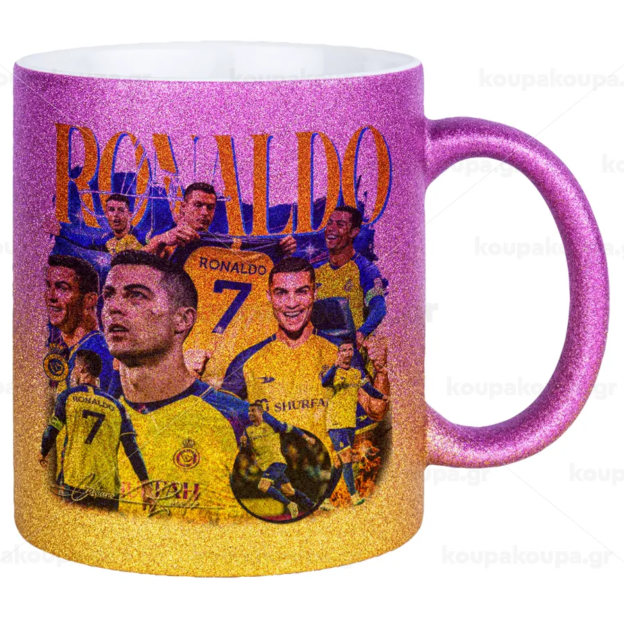 Cristiano Ronaldo Al Nassr, Κούπα Χρυσή/Ροζ Glitter, κεραμική, 330ml