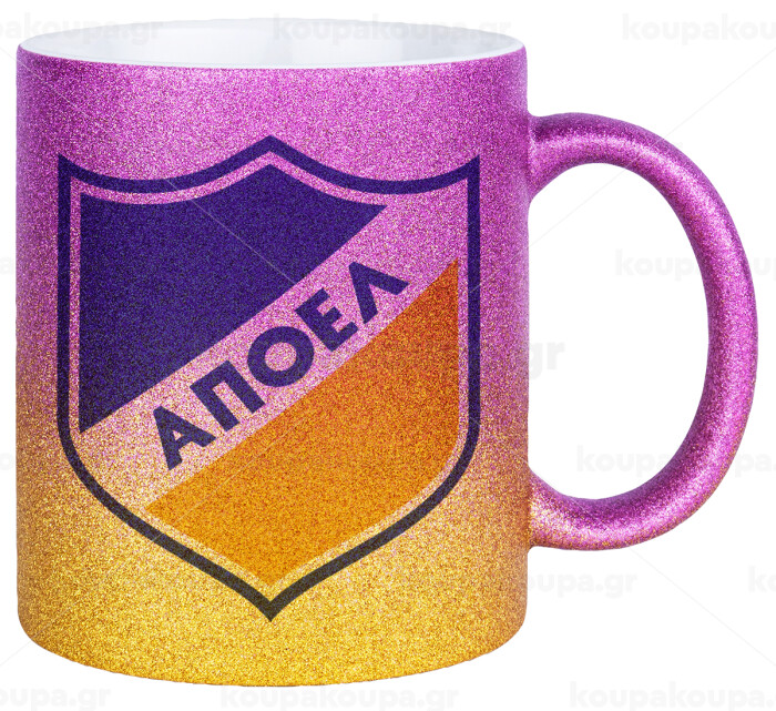 FC ΑΠΟΕΛ Λευκωσίας, Κούπα Χρυσή/Ροζ Glitter, κεραμική, 330ml