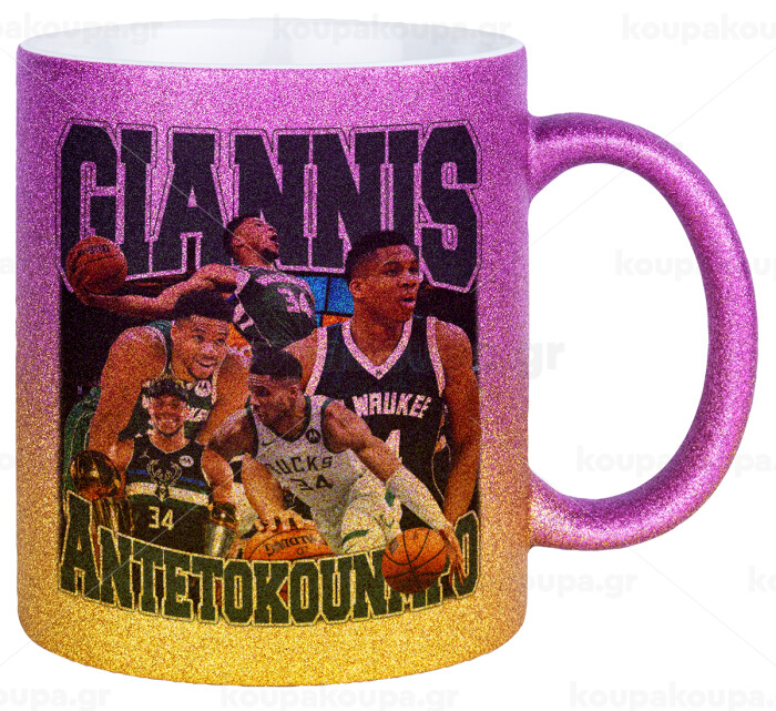 Giannis Antetokounmpo, Κούπα Χρυσή/Ροζ Glitter, κεραμική, 330ml