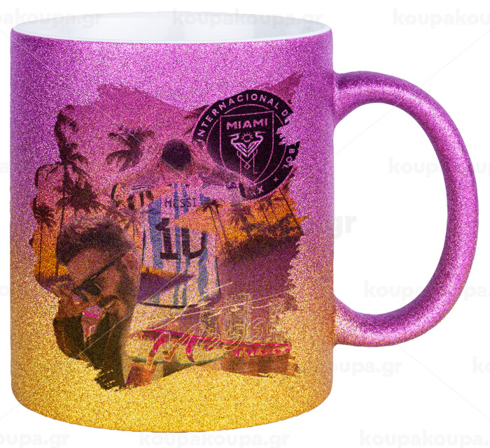 Lionel Messi Miami, Κούπα Χρυσή/Ροζ Glitter, κεραμική, 330ml