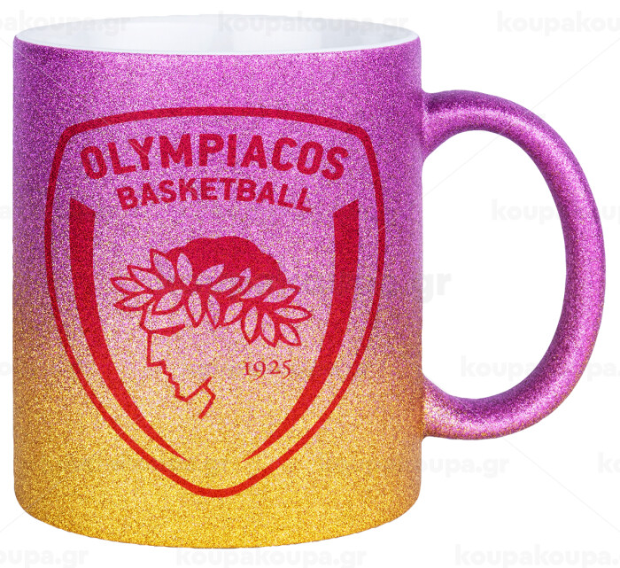 Olympiacos B.C., Κούπα Χρυσή/Ροζ Glitter, κεραμική, 330ml