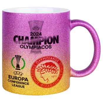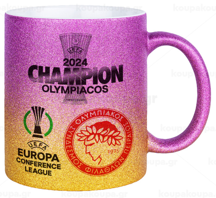 Olympiacos UEFA Europa Conference League Champion 2024, Κούπα Χρυσή/Ροζ Glitter, κεραμική, 330ml