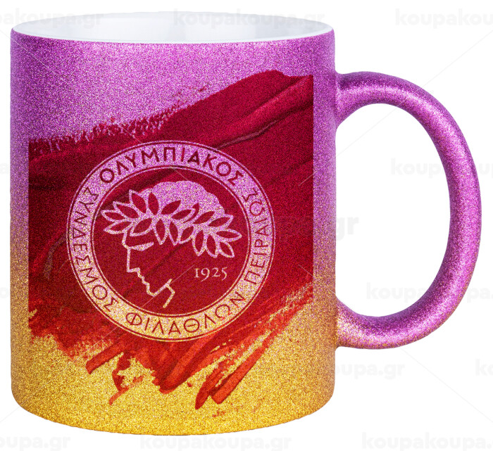 Olympiacos F.C., Κούπα Χρυσή/Ροζ Glitter, κεραμική, 330ml
