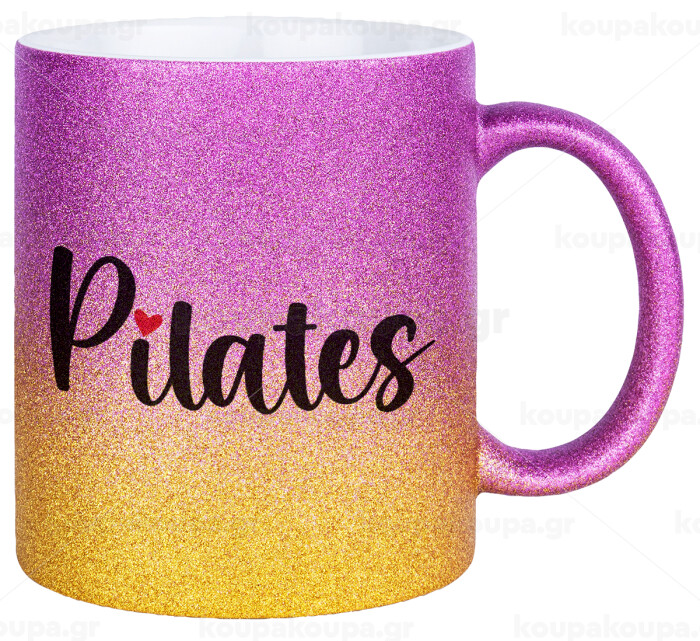 Pilates love, Κούπα Χρυσή/Ροζ Glitter, κεραμική, 330ml