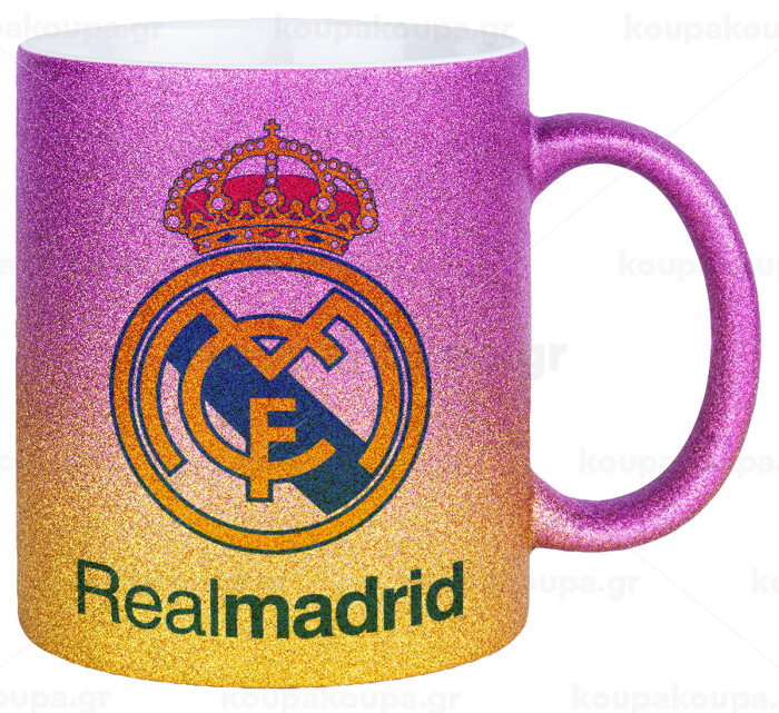 Real Madrid CF, Κούπα Χρυσή/Ροζ Glitter, κεραμική, 330ml