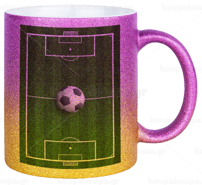Soccer field, Γήπεδο ποδοσφαίρου, Κούπα Χρυσή/Ροζ Glitter, κεραμική, 330ml