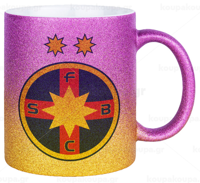 FC Steaua Bucuresti (FCSB), Κούπα Χρυσή/Ροζ Glitter, κεραμική, 330ml
