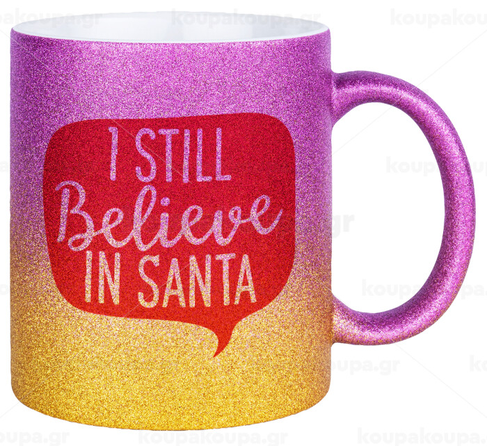 Ι still believe in santa, Κούπα Χρυσή/Ροζ Glitter, κεραμική, 330ml