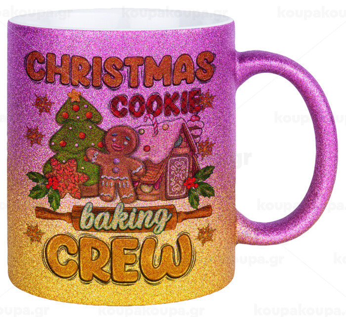 Christmas Cookie Baking Crew, Κούπα Χρυσή/Ροζ Glitter, κεραμική, 330ml