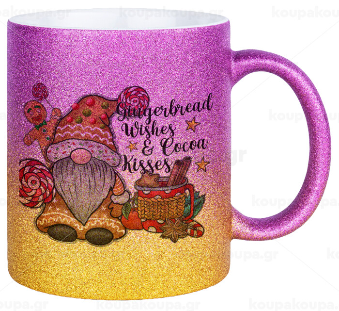 Gingerbread Wishes, Κούπα Χρυσή/Ροζ Glitter, κεραμική, 330ml