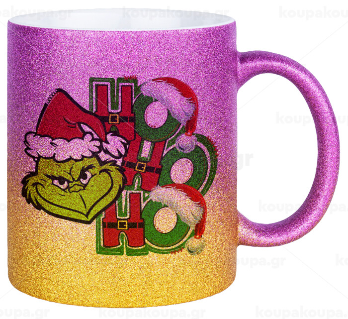 Grinch ho ho ho, Κούπα Χρυσή/Ροζ Glitter, κεραμική, 330ml