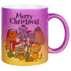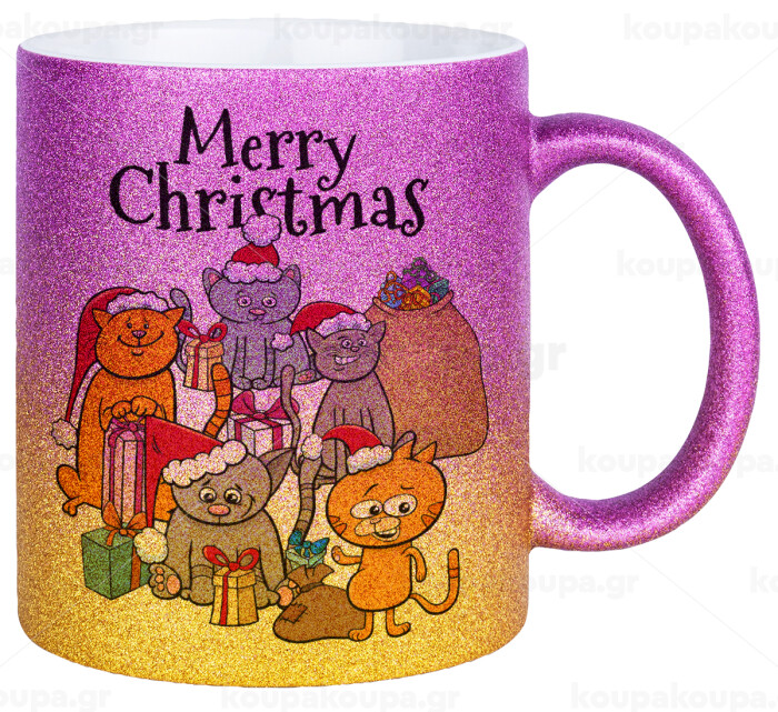 Merry Christmas Cats, Κούπα Χρυσή/Ροζ Glitter, κεραμική, 330ml