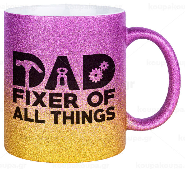 DAD, fixer of all thinks, Κούπα Χρυσή/Ροζ Glitter, κεραμική, 330ml