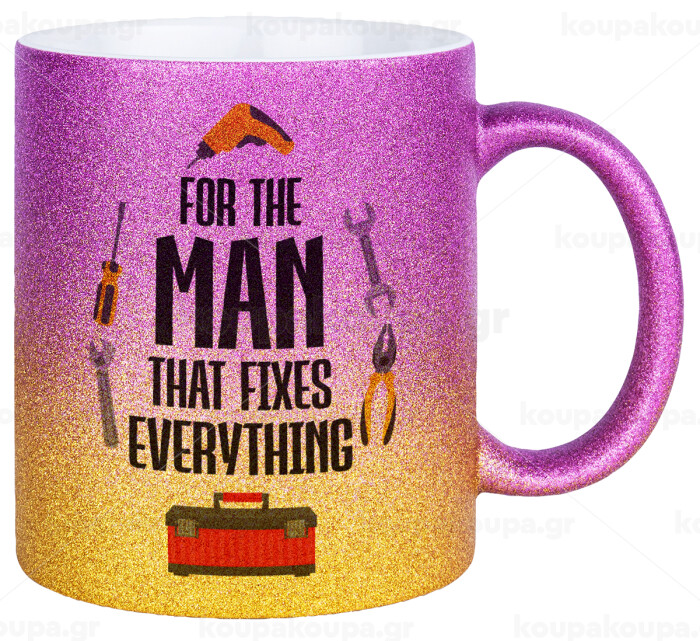 For the man that fixes everything!, Κούπα Χρυσή/Ροζ Glitter, κεραμική, 330ml