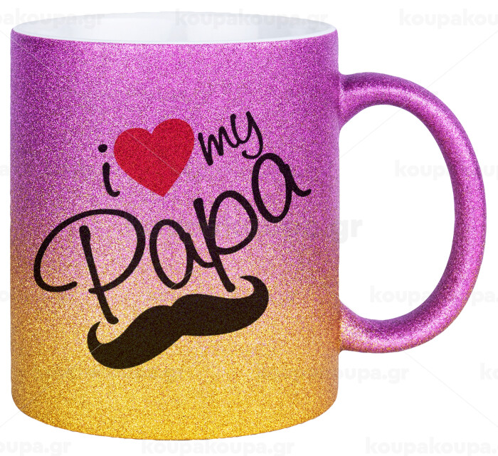 I Love my papa, Κούπα Χρυσή/Ροζ Glitter, κεραμική, 330ml