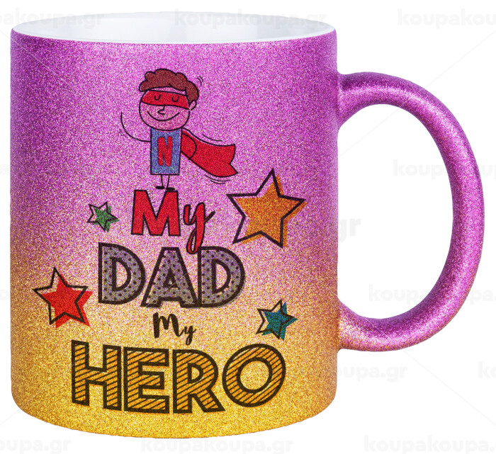 My Dad, my Hero!!!, Κούπα Χρυσή/Ροζ Glitter, κεραμική, 330ml