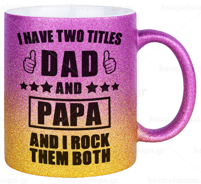 I have two title, DAD & PAPA, Κούπα Χρυσή/Ροζ Glitter, κεραμική, 330ml