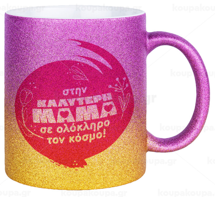 Στην καλύτερη μαμά του κόσμου!, Κούπα Χρυσή/Ροζ Glitter, κεραμική, 330ml