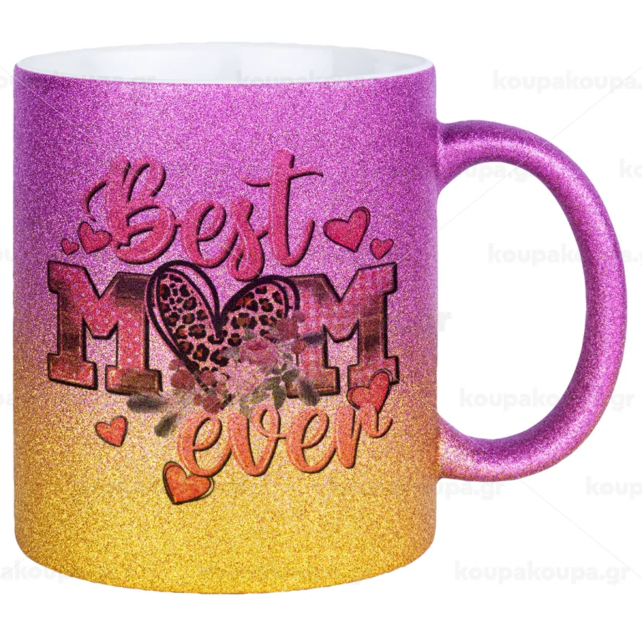 Best mom ever Mother's Day, Κούπα Χρυσή/Ροζ Glitter, κεραμική, 330ml