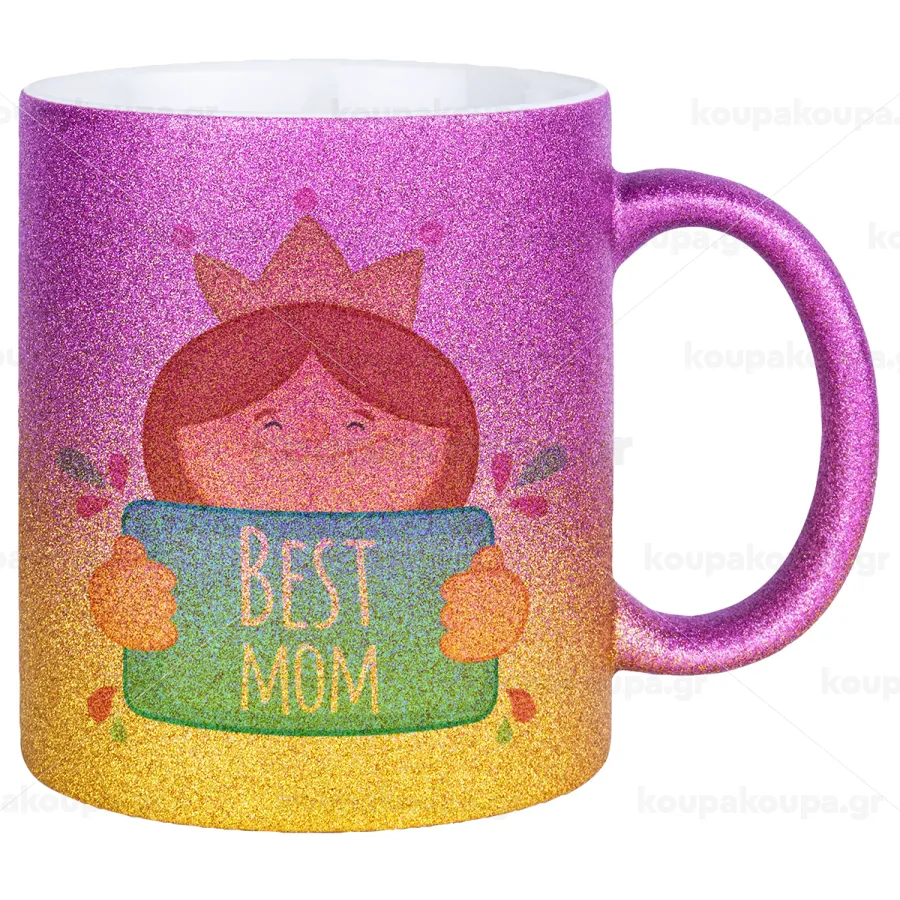 Best mom Princess, Κούπα Χρυσή/Ροζ Glitter, κεραμική, 330ml