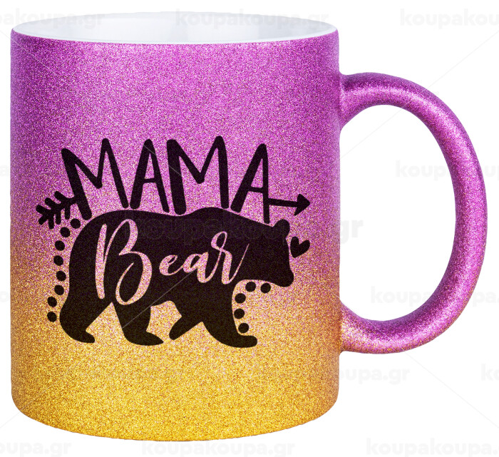 Mama Bear, Κούπα Χρυσή/Ροζ Glitter, κεραμική, 330ml