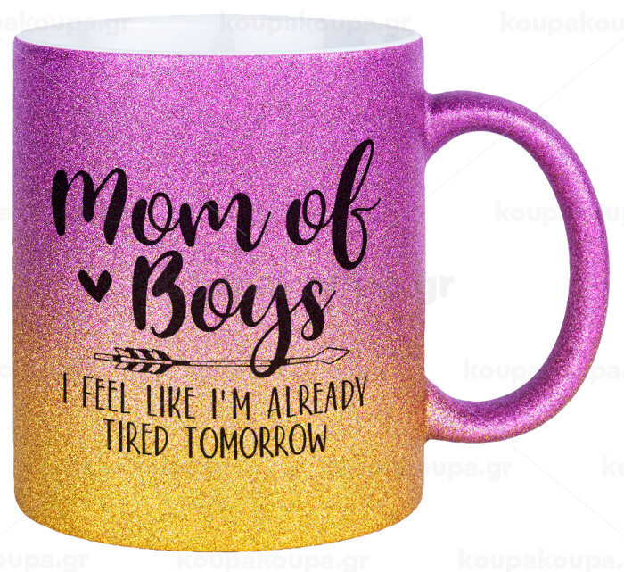 Mom of boys i feel like im already tired tomorrow, Κούπα Χρυσή/Ροζ Glitter, κεραμική, 330ml