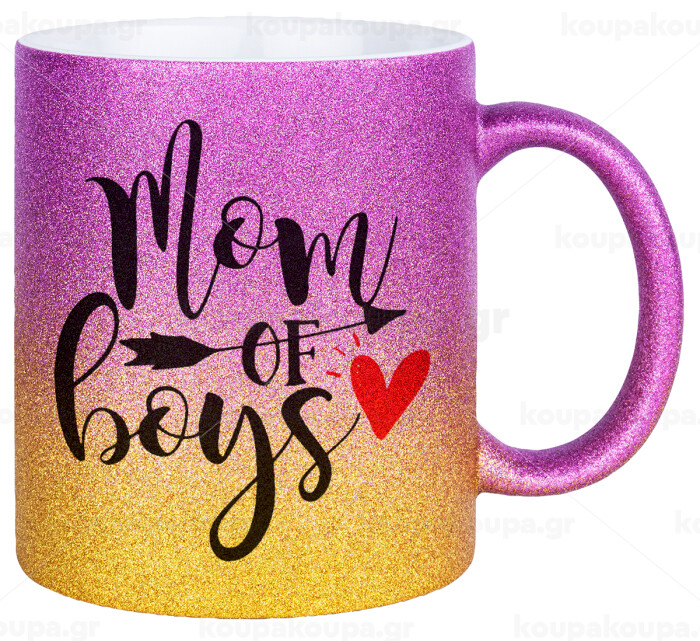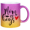 Mom of boys, Κούπα Χρυσή/Ροζ Glitter, κεραμική, 330ml