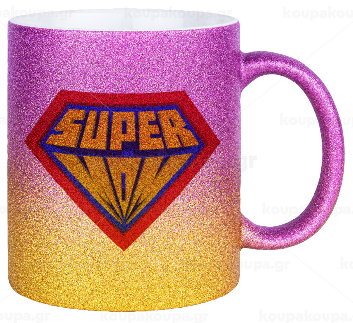 Super Mom 3D, Κούπα Χρυσή/Ροζ Glitter, κεραμική, 330ml