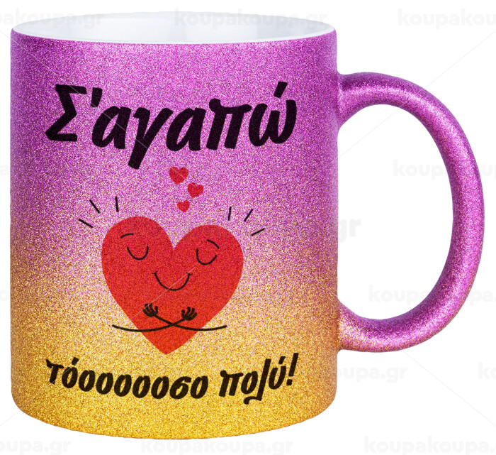 Σ΄αγαπώ τόοοοσο πολύ καρδιά, Κούπα Χρυσή/Ροζ Glitter, κεραμική, 330ml