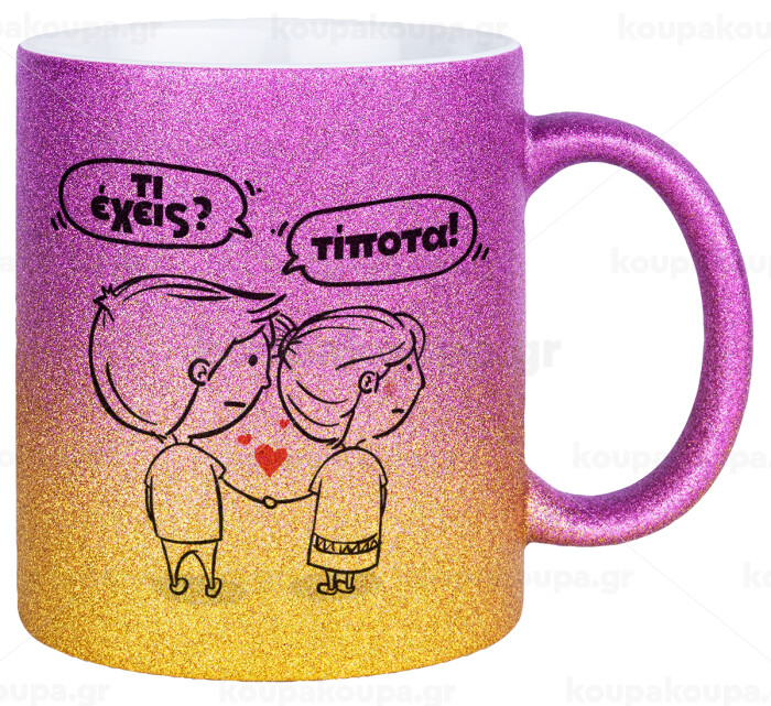 Τι έχεις? Τίποτα!, Κούπα Χρυσή/Ροζ Glitter, κεραμική, 330ml