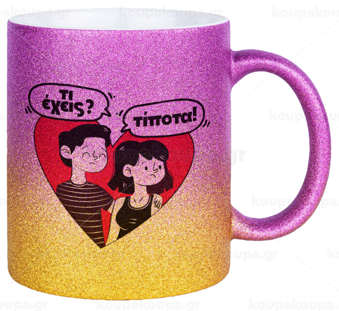 Τι έχεις? Τίποτα!, Κούπα Χρυσή/Ροζ Glitter, κεραμική, 330ml