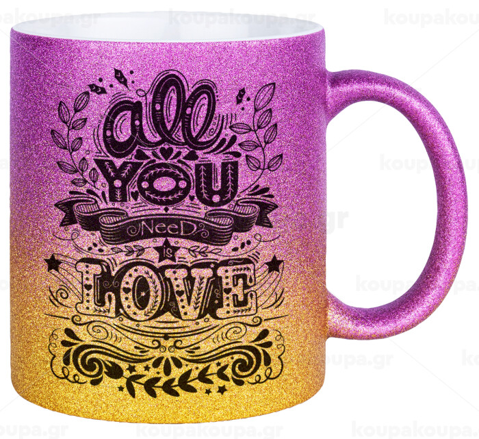 All you need is love, Κούπα Χρυσή/Ροζ Glitter, κεραμική, 330ml