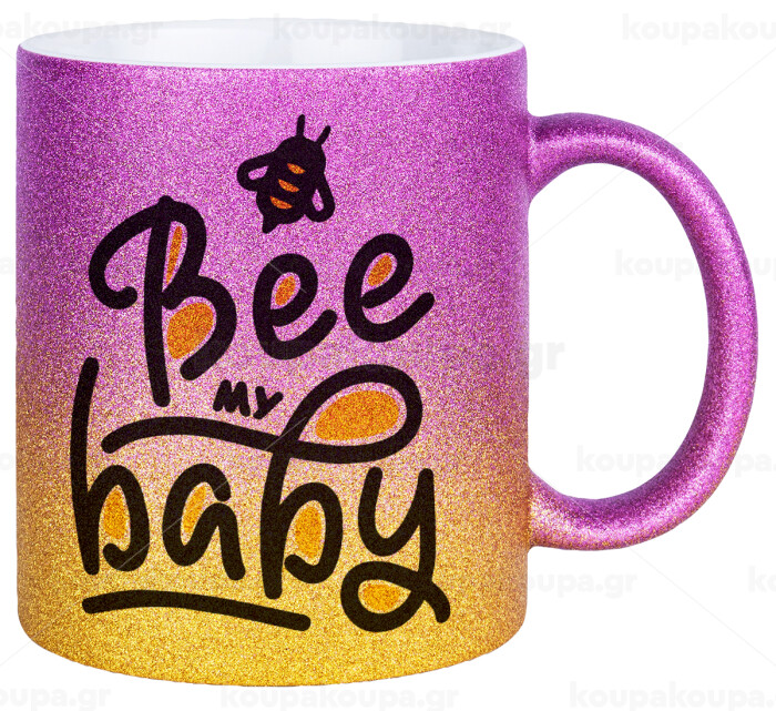 Bee my BABY!!!, Κούπα Χρυσή/Ροζ Glitter, κεραμική, 330ml
