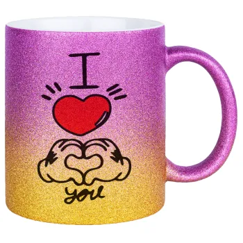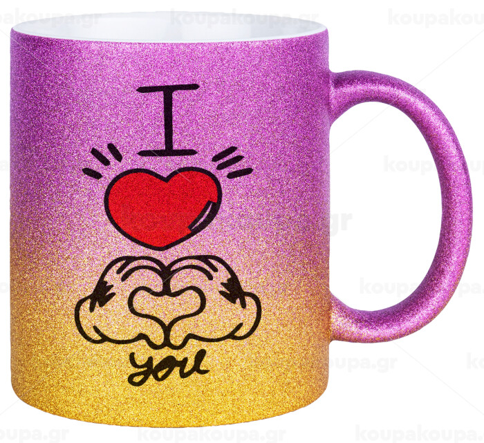 comics hands love, Κούπα Χρυσή/Ροζ Glitter, κεραμική, 330ml