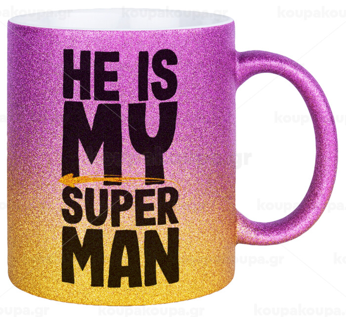 He is my superman, Κούπα Χρυσή/Ροζ Glitter, κεραμική, 330ml