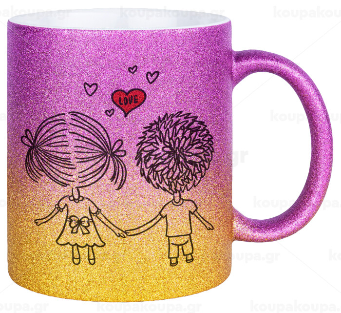 Hold my hand for ever, Κούπα Χρυσή/Ροζ Glitter, κεραμική, 330ml