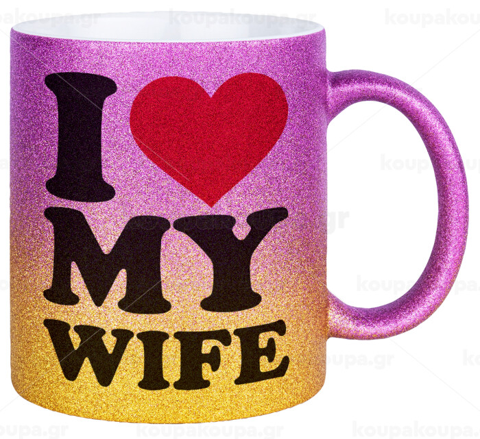 I Love my Wife, Κούπα Χρυσή/Ροζ Glitter, κεραμική, 330ml